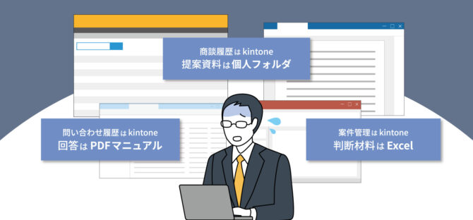 例えば、商談の履歴はkintoneに入力するけれど、提案書は個人フォルダにある。